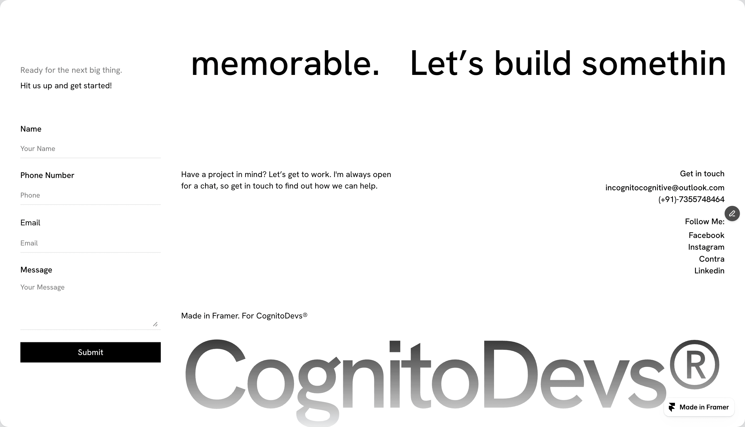 CognitoDevs is a portfolio template for digital creators who don't need the site to compete with the work.