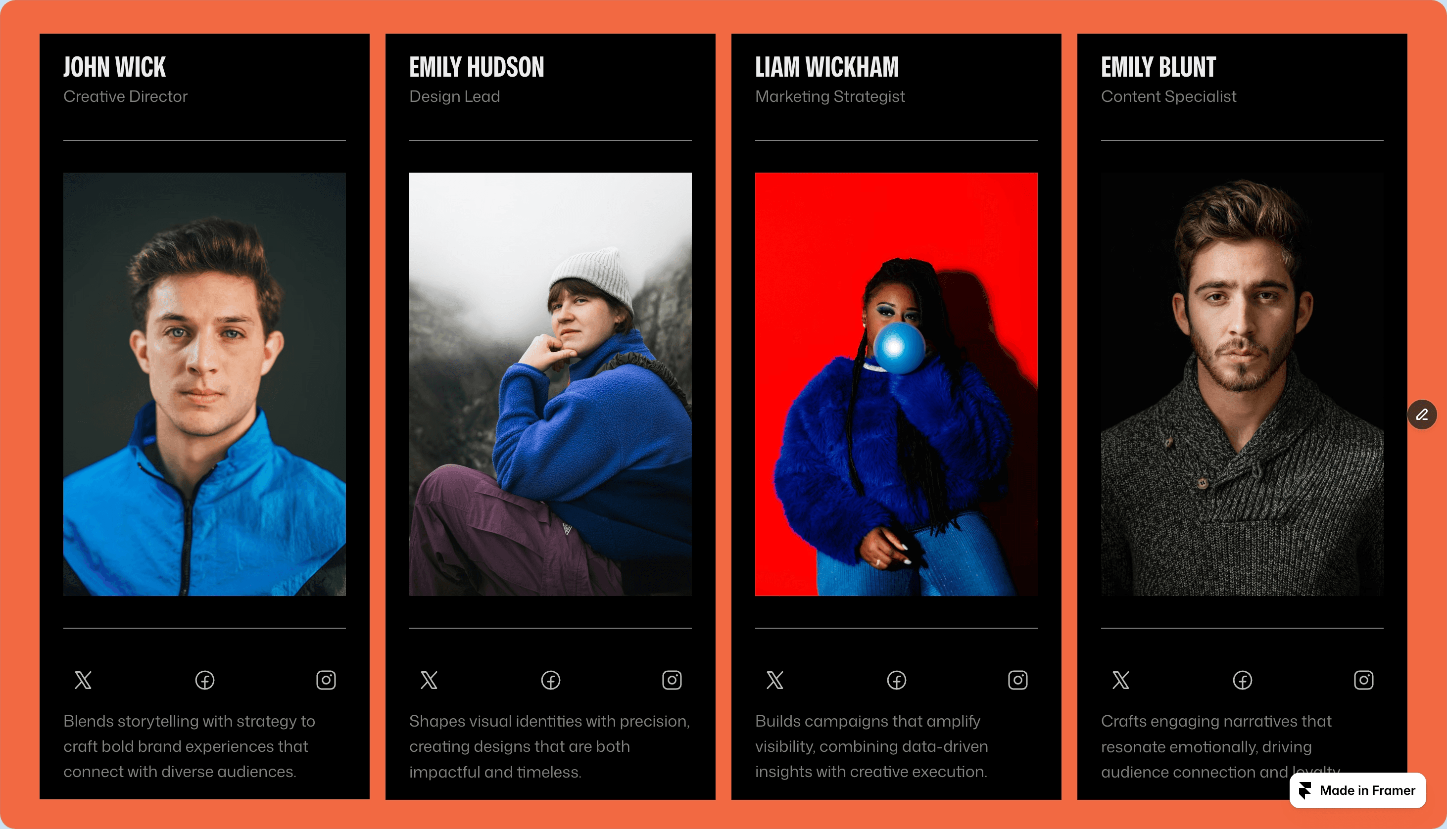 Most of them do. Blog posts, case studies, team pages — wherever repeating content makes sense, we've wired up CMS collections so you're not manually duplicating frames every time you add something.