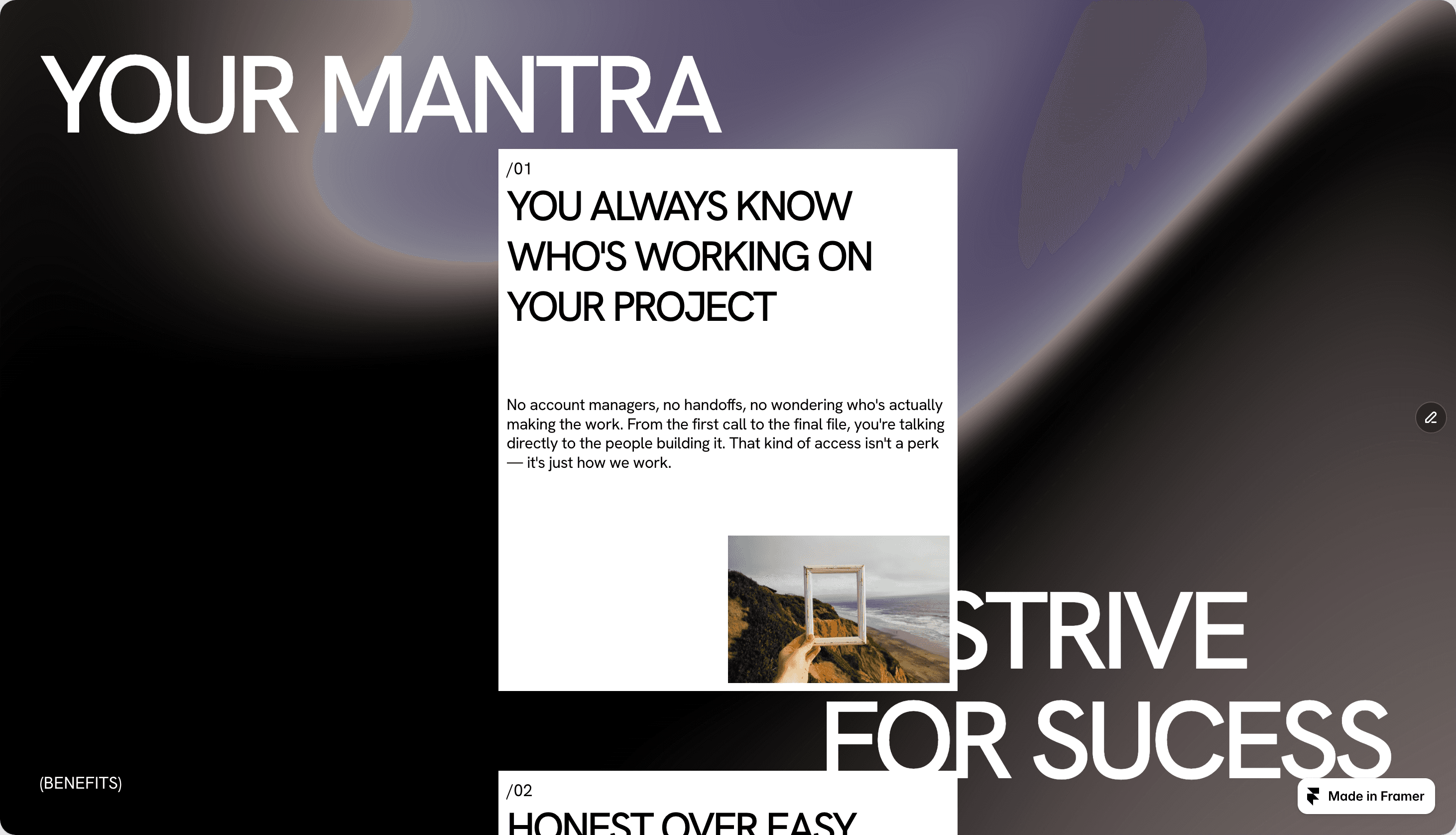 Sticky sections do real work here. A headline stays on screen while the case study content scrolls. A service category locks in place while the detail fills in below it. It keeps people oriented without a nav update every three pixels. The interaction is structural, not decorative.