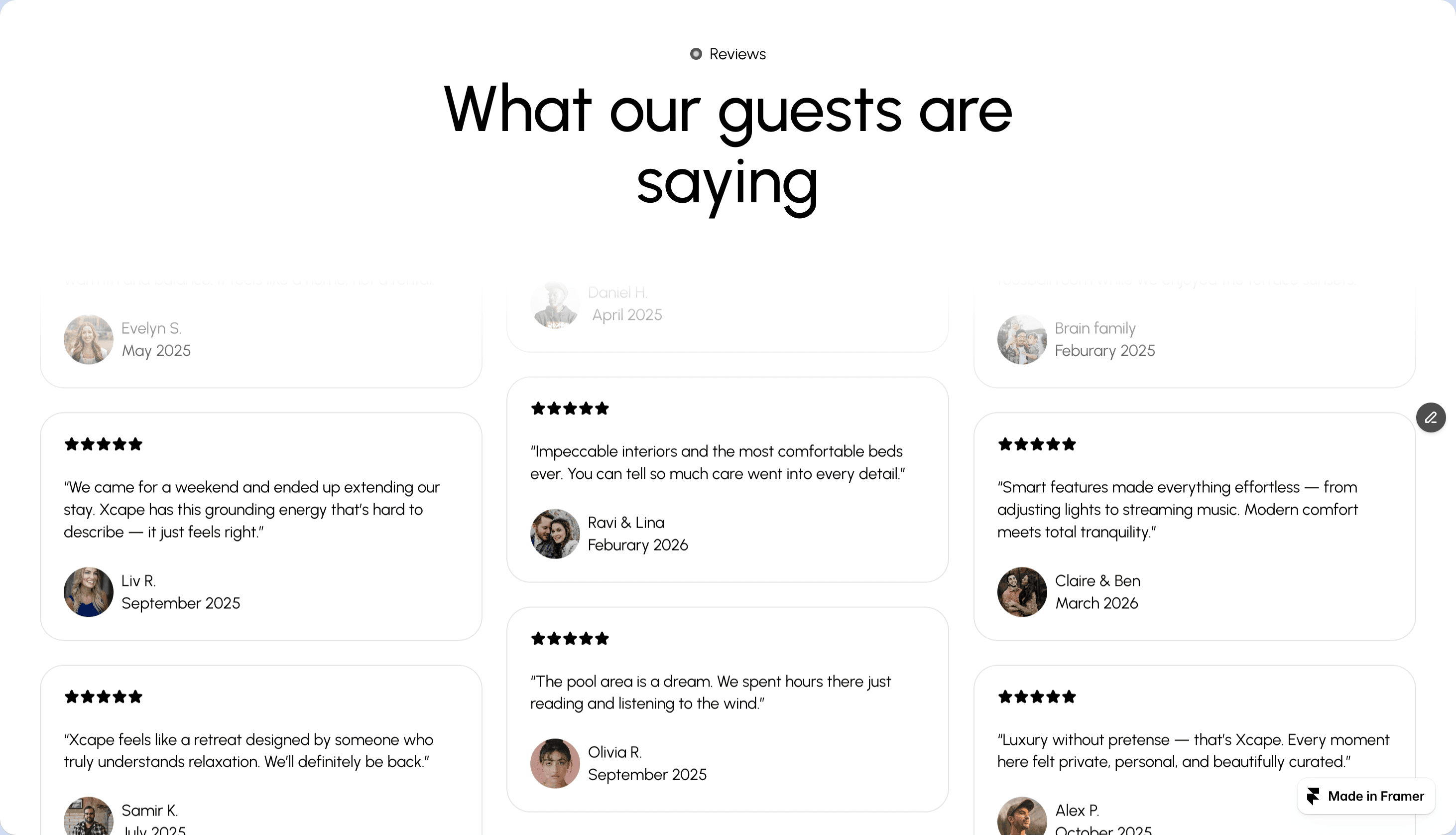 Yes. One purchase, all future updates included. We improve templates as Framer ships new features and we notice things worth fixing. No subscriptions.